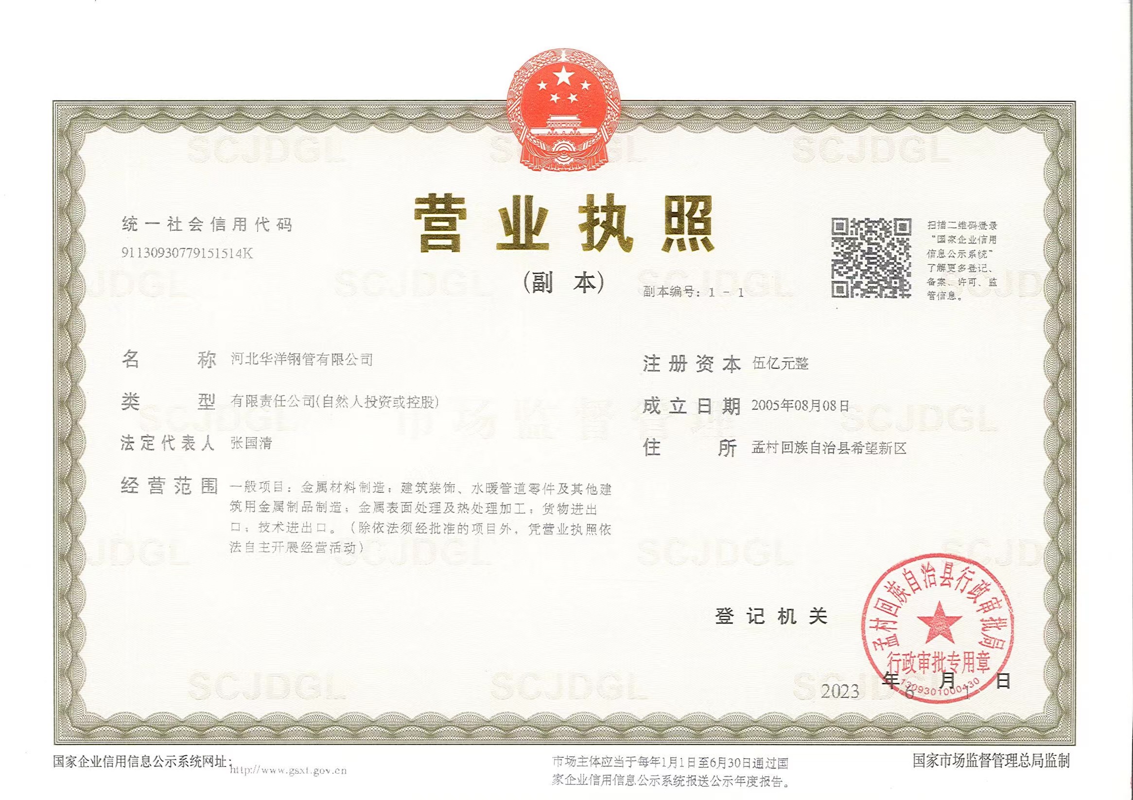 河北華洋鋼管有限公司公司創(chuàng)建于2005年,注冊資金5億元,公司占地面積1000余畝,固定資產(chǎn)12億元,年銷售收入近100億元,現(xiàn)有員工600余人。“華洋牌"高頻直焊鋼管被評(píng)為“河北省名牌產(chǎn)品”,年生產(chǎn)能力可達(dá)260萬噸,2024年河北華洋鋼管有限公司榮獲河北省百強(qiáng)民營企業(yè)(69位),河北省百強(qiáng)制造業(yè)(57位)榮譽(yù)稱號(hào)。