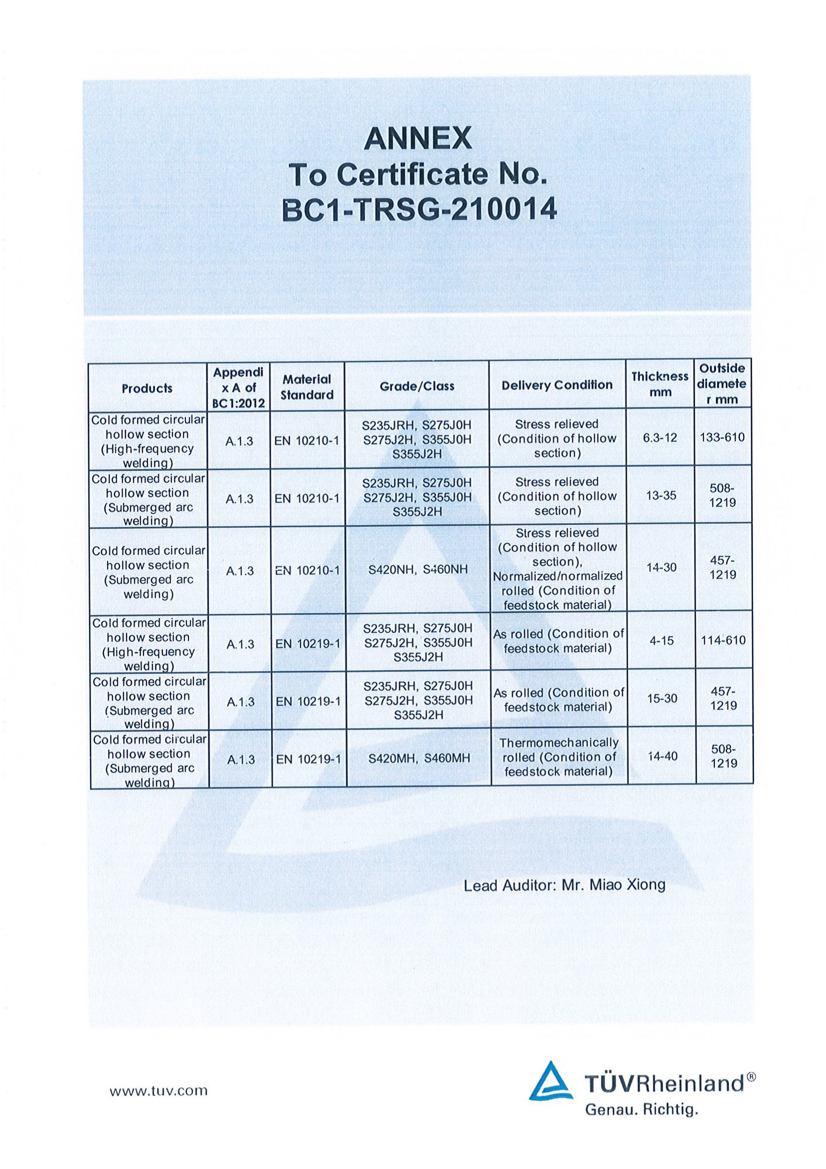 公司現(xiàn)有17條新型的自動(dòng)化鋼管生產(chǎn)線,包括Φ73-660.4高頻直縫焊鋼管生產(chǎn)線14條、Φ406.4-Φ1422.4直縫雙面埋弧焊鋼管生產(chǎn)線3條,并配備有一條防腐生產(chǎn)線,可進(jìn)行3PE、2PE、FBE、2PP、3PP防腐處理,同時(shí)還可提供鋼管深加工服務(wù)。公司擁有先進(jìn)的理化實(shí)驗(yàn)室,可承擔(dān)鋼管的各項(xiàng)物理及化學(xué)檢測與試驗(yàn)。公司先后取得了ISO9001質(zhì)量管理體系認(rèn)證、ISO14001環(huán)境管理體系認(rèn)證、ISO45001職業(yè)健康安全管理體系認(rèn)證、特種設(shè)備制造許可證、API5L和API2B認(rèn)證證書、歐盟CE認(rèn)證、俄羅斯GOST認(rèn)證、中海油入網(wǎng)證、安全生產(chǎn)標(biāo)準(zhǔn)化二級(jí)企業(yè)等標(biāo)準(zhǔn)質(zhì)量體系認(rèn)證。